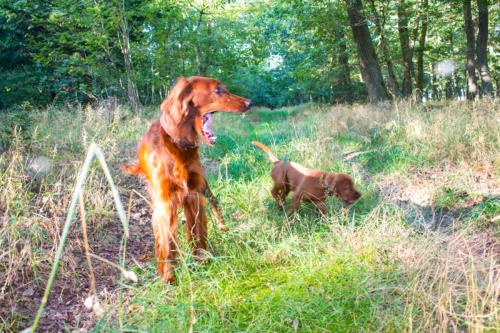 Am Waldrand angekommen, ließen wir erst die beiden Großen raus. Als sie das Revier