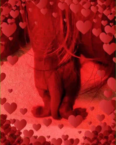 mit der Pfote auf den Rücken gelegt, damit man besser dran kommt, oder